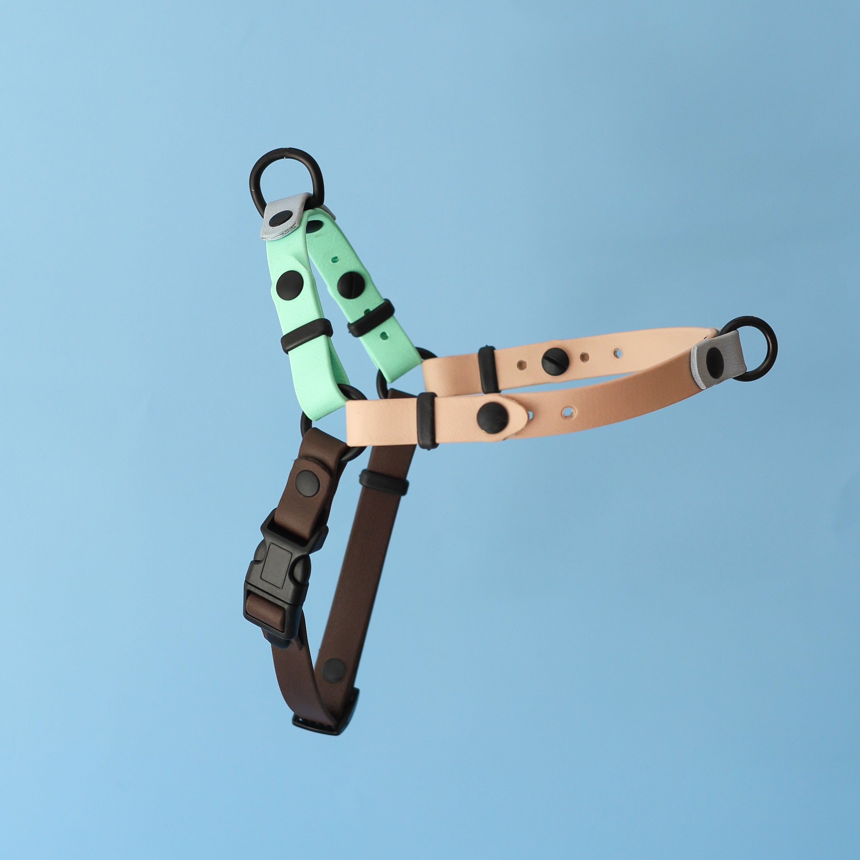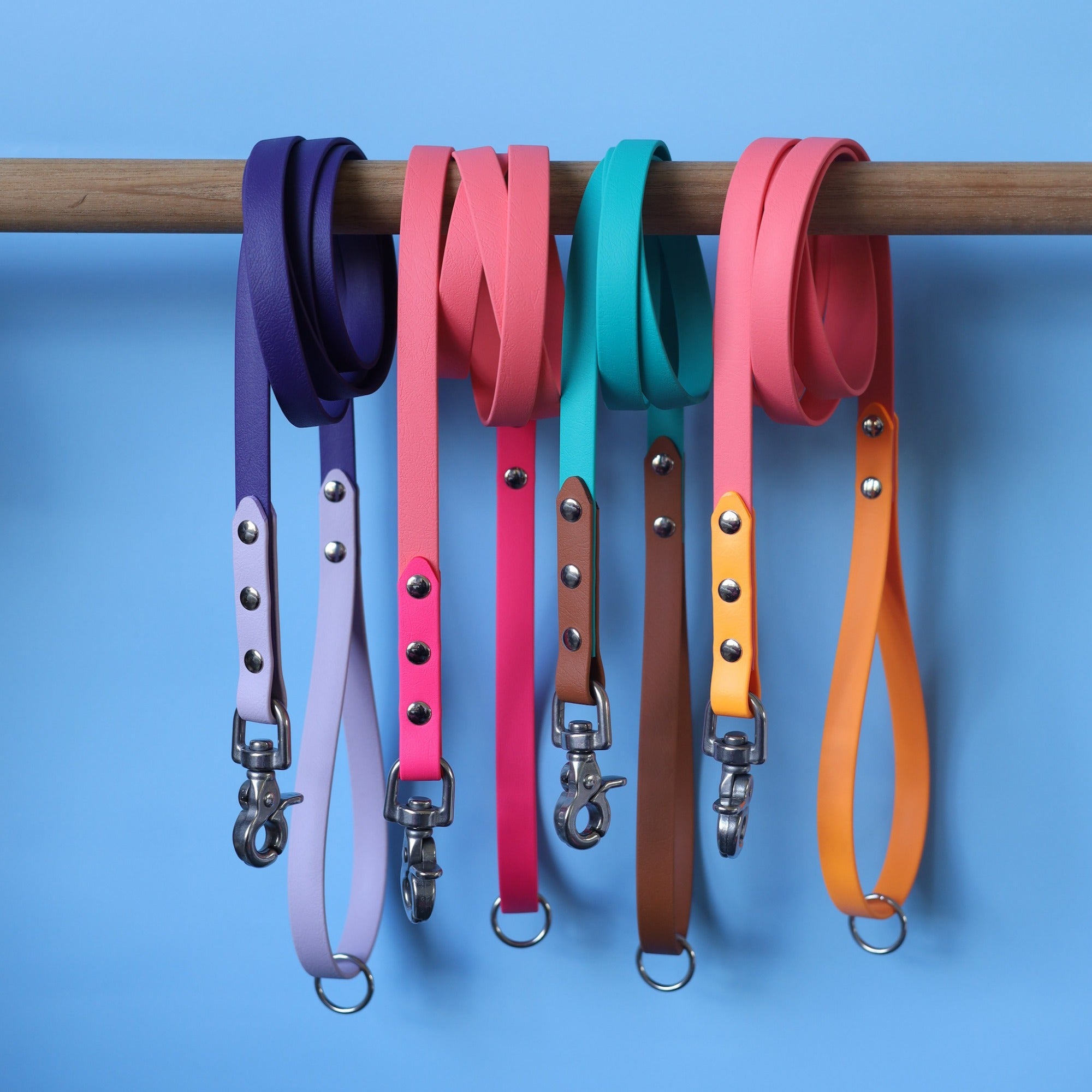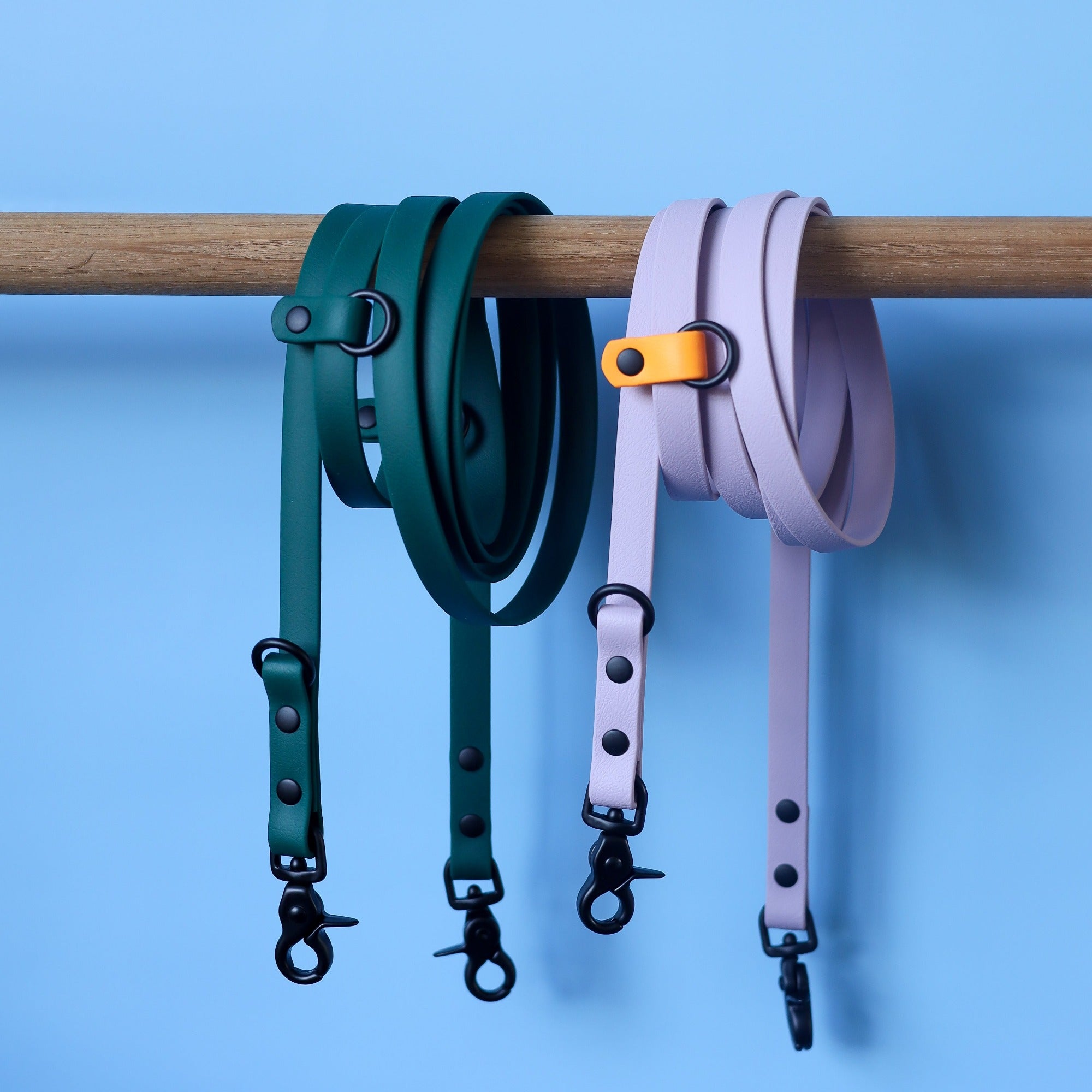 Our collars and leads are made with either BioThane webbing or rope, which are both durable and strong materials. BioThane is a type of webbing material that is completely waterproof and odor-resistant, while the rope is soft and comfortable to hold, making it easy to handle.