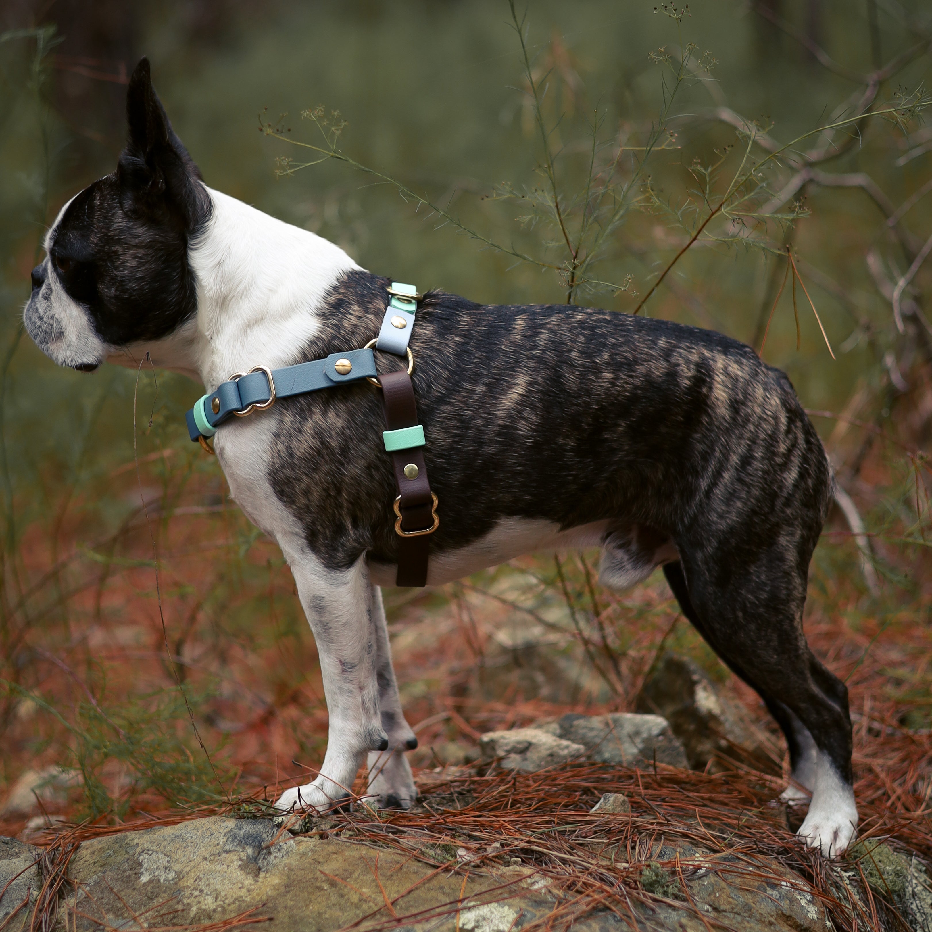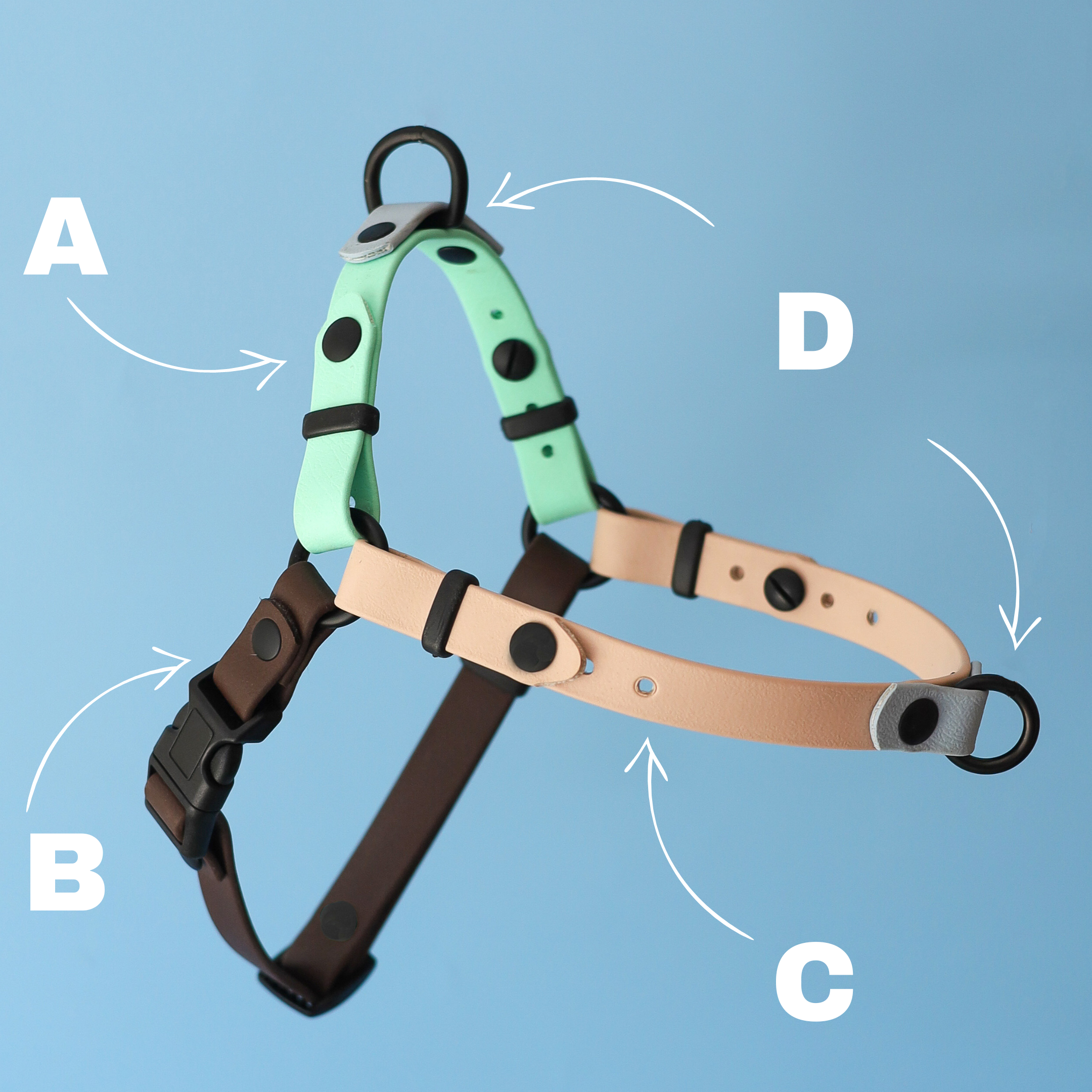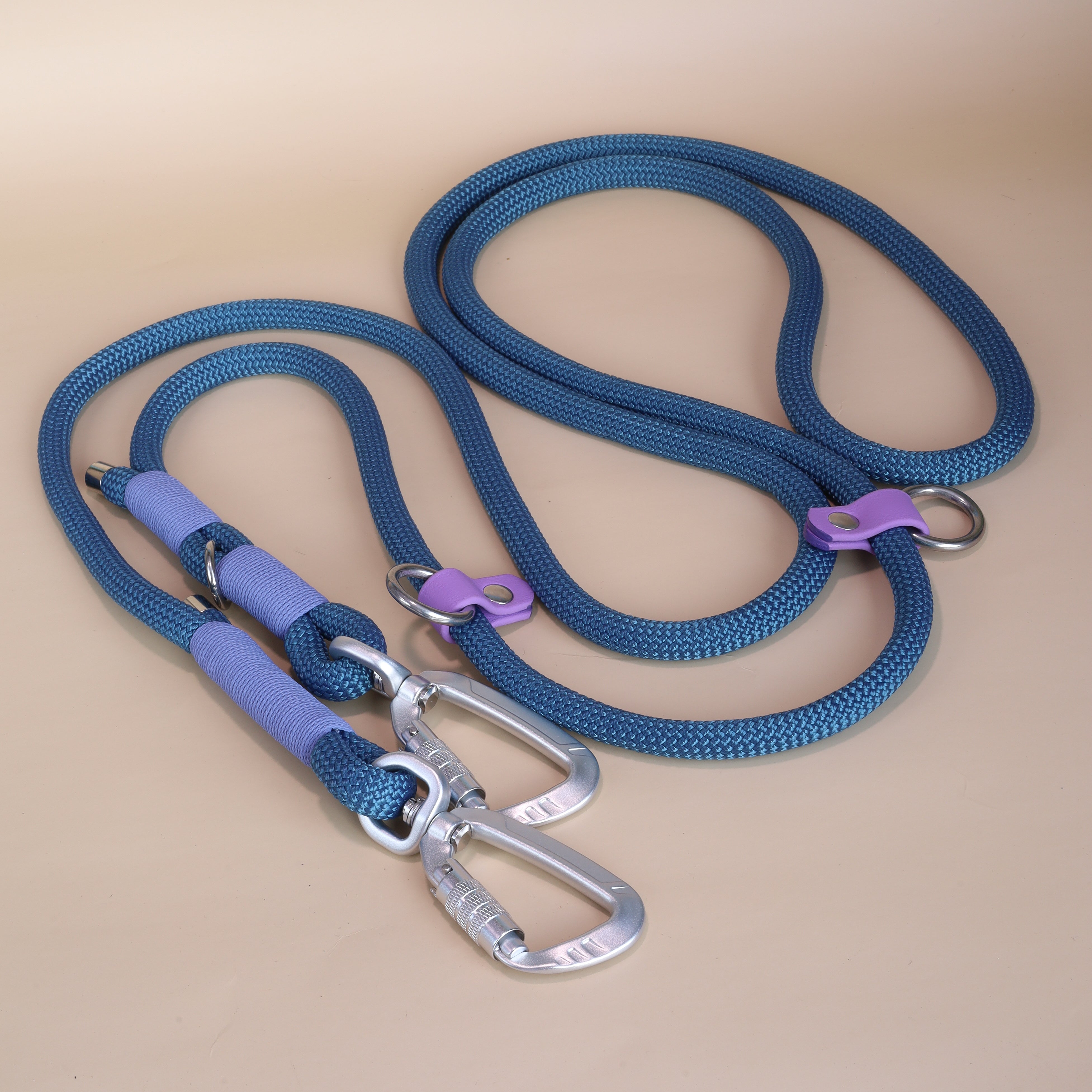 Our collars and leads are made with either BioThane webbing or rope, which are both durable and strong materials. BioThane is a type of webbing material that is completely waterproof and odor-resistant, while the rope is soft and comfortable to hold, making it easy to handle.