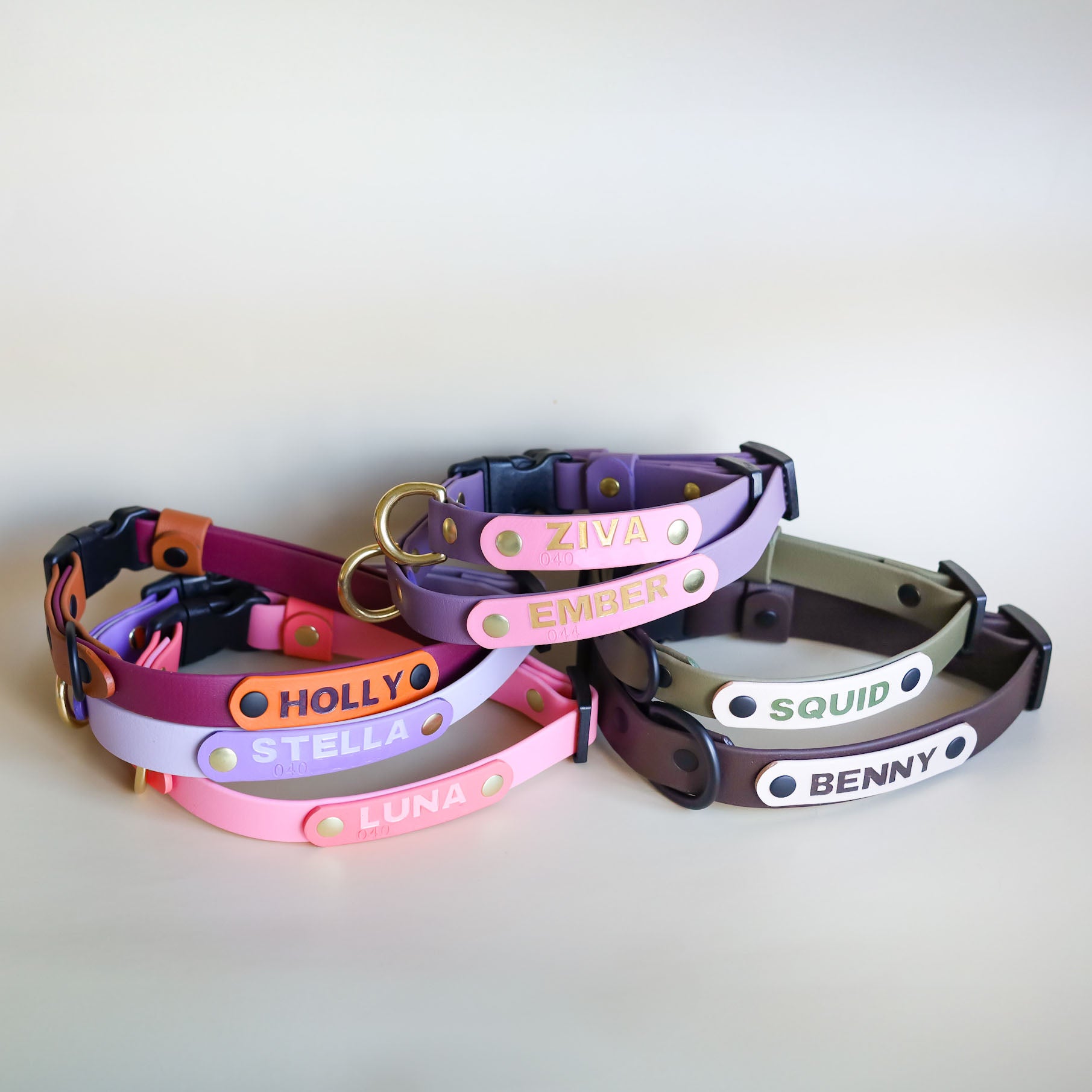 You can now add a name plate on most our collars, Click here --> to add a custom name plate to your collar